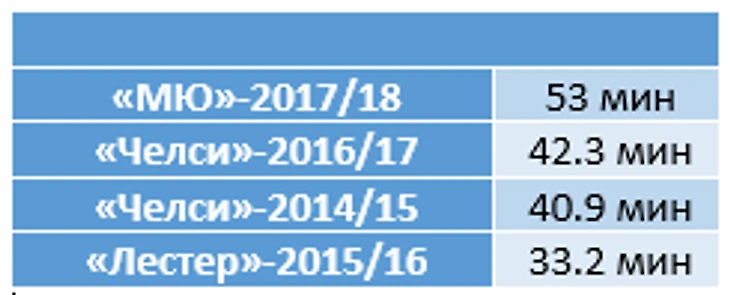 Цифра «Сити» близка к стандартной реализации явных моментов. Цифра «МЮ» намного лучше, но едва ли ее реально поддерживать на дистанции всего сезона. Из-за того, как легко «Юнайтед» дается первый гол, они аномально много времени проводят, лидируя в счете.