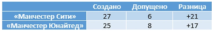 Пока все сходится, но, если проанализировать количество явных моментов, которое требуется «МЮ» и «Сити» для первого гола, картина станет труднее.