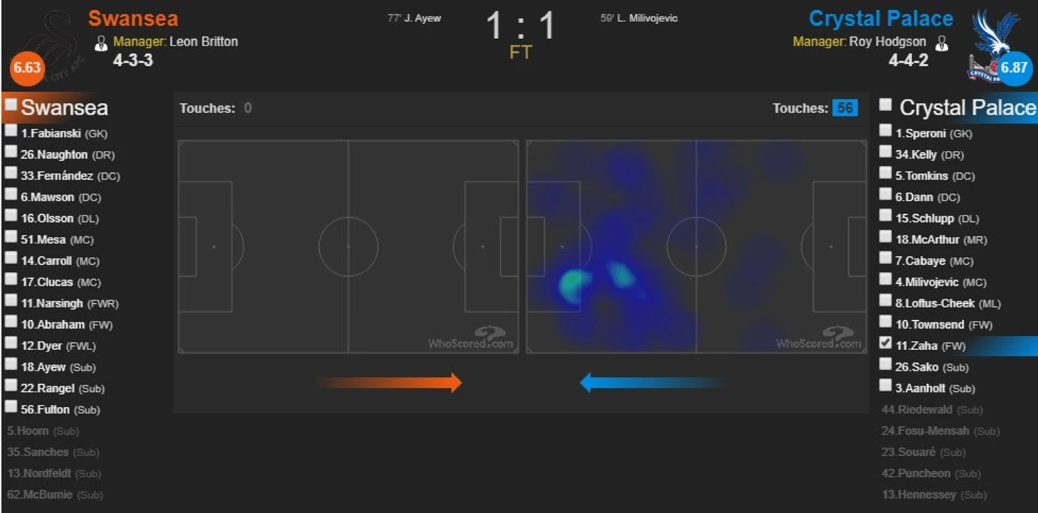 В этом сезоне Заха забил 4 мяча и отдал одну голевую передачу (плюс парочка заработанных пенальти). Он лучший бомбардир команды, Уилфрид поучаствовал в 28% от всех голов «Кристал Пэлас».