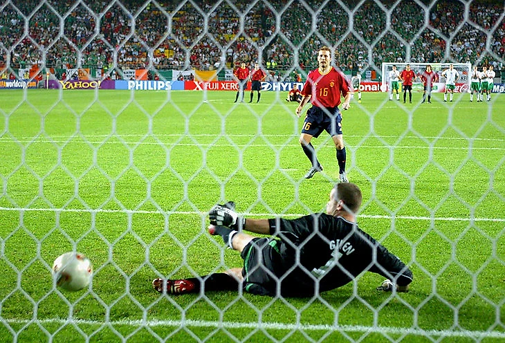 Блестящим пенальтистом был Гаиска Мендьета (всего 3 смазанных пенальти при 34 реализованных). Испанца вообще не волновал статус матча – он одинаково хорошо бил и в примере, и в финале ЛЧ (в 2001-м он забил с точки Оливеру Кану уже на 3-й минуте), и на Евро. Стиль Мендьеты сводил с ума даже таких опытных ребят, как Икер Касильяс: «Он не отрывал от меня глаз. Да он даже не смотрел на мяч! Господи, что за человек!». Обычно символ «Валенсии» пялился на вратаря или показывал глазами ложное направление удара. Мяч? Это ни к чему. «Я смотрел на мяч, ставя его на точку, а затем я пристально наблюдал за вратарем. Глаза и равновесие – это нормально работало», – пожимал плечами Мендьета.