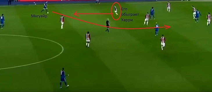 Магуайр шикарно продвигает мяч, проламываясь через первую (и иногда вторую) линию игроков соперника.