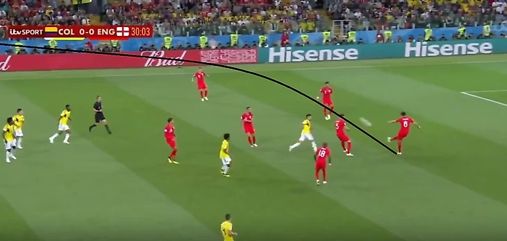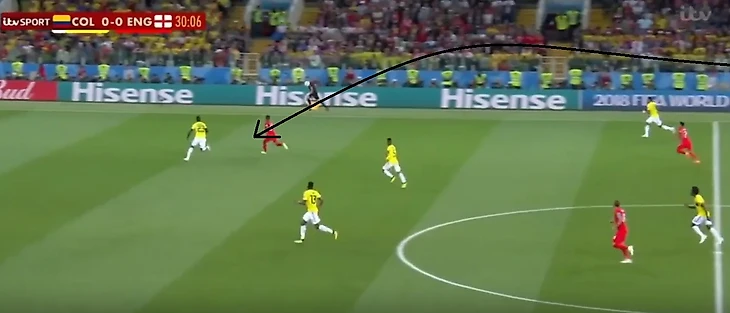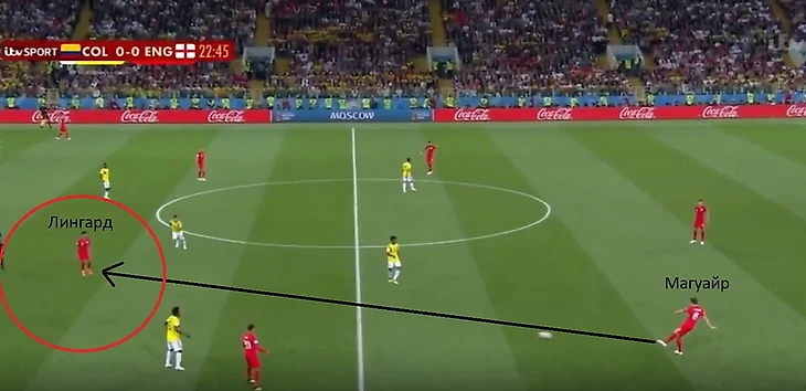 Умный Магуайр увидел отличное открывание Лингарда между линиями и отдал хорошую передачу, отрезав две линии обороны Колумбии.