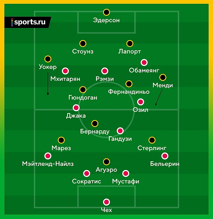 Последние полчаса были более равными. «Сити» сбавил обороты, а «Арсенал» избавился от неопределенности и путаницы из-за гибридных ролей Мхитаряна и Озила.