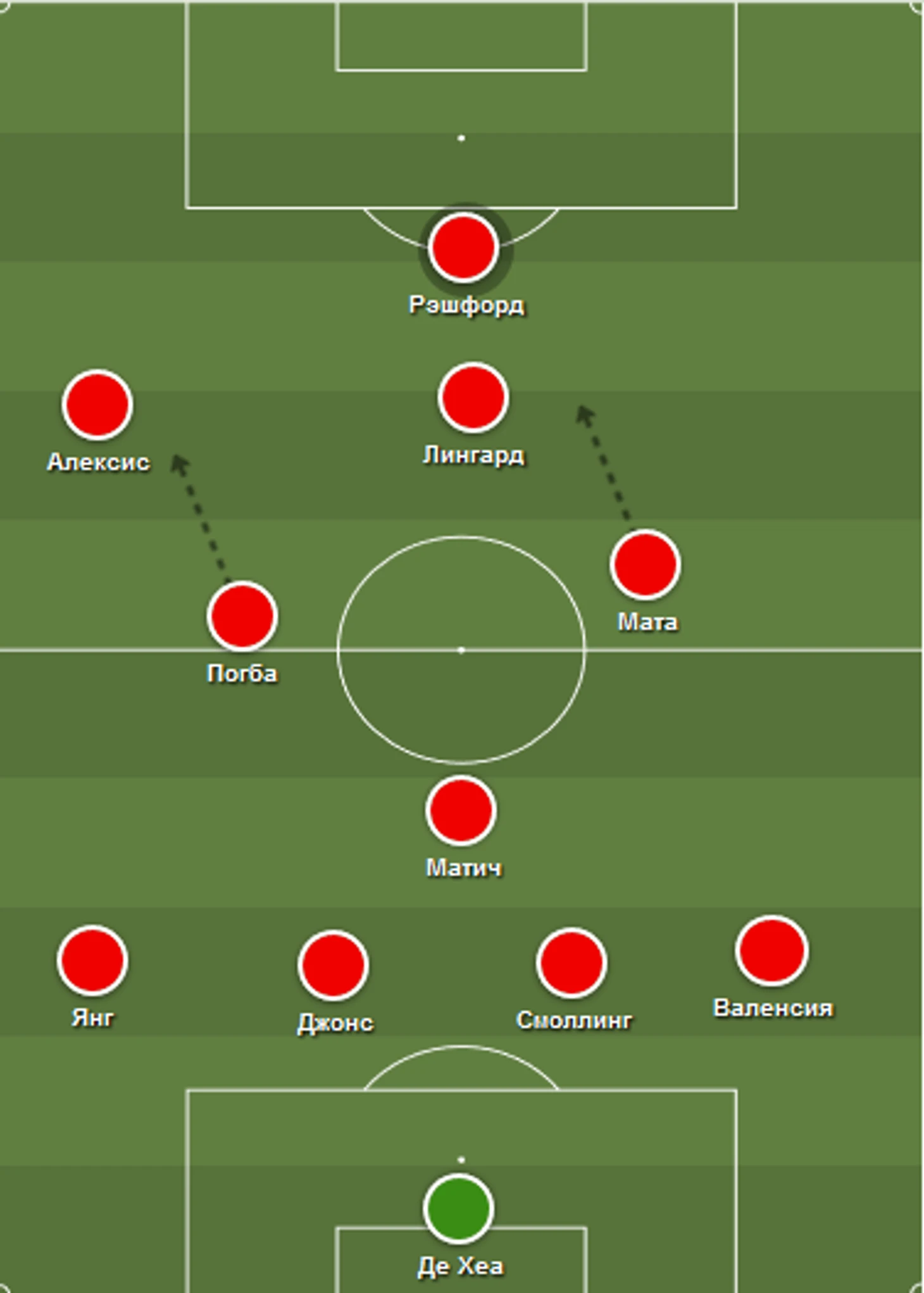В целом расположение полузащитников «Юнайтед» напоминало треугольник, но не привычные его вариации, а фигуру, повернутую вершиной к левому флангу.