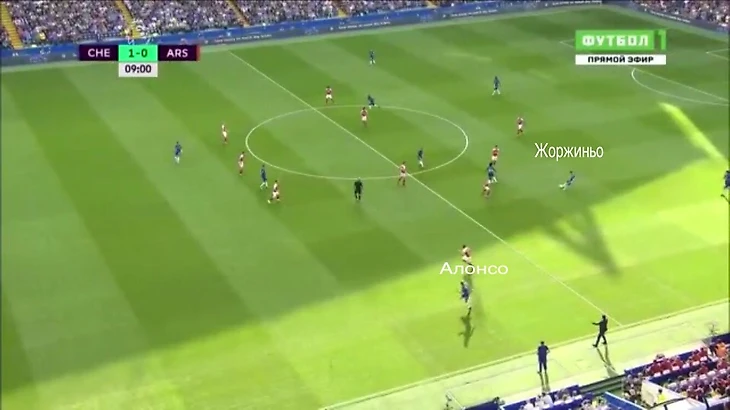 Пример – гол Педро на 9-й минуте. Виллиан, будучи под прессингом, увел защитника «Арсенала» и откатил мяч на свободного Жоржиньо, который в касание сделал длинную передачу в свободную зону на Алонсо