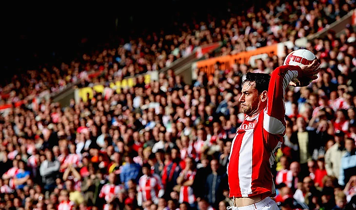 В свой первый ноябрь в премьер-лиге (чудный 2008 год) «Сток» вошел с 13 голами. Ноль мячей с угловых казался недоразумением для такой рослой и мощной команды, но до лиги уже начало доходить, что на «Британия Стэдиум» главная опасность кроется не у угловых флажков. 7 из этих 13 голов залетели после впечатляющих аутов Рори Делапа. От длинных рук бывшего школьного чемпиона в метании копья пострадали «Астон Вилла», «Эвертон», «Сандерленд» и «Арсенал». До конца чемпионата Делап организовал еще два гола, накопив за сезон 267 длинных бросков из аута (за long throws Opta считает броски на расстояние дальше 20 ярдов – 18,28 метров). В двух следующих сезонах Рори пробил отметку в 300 таких бросков (345 и 320). Хотя количество голов регрессировало (5 и 4), панику вызывал даже жест, которым Делап просил у болбоя фирменное полотенце, чтобы обтереть мяч.