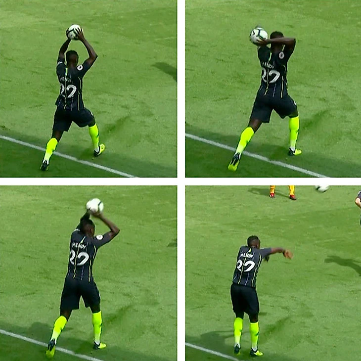 Точно так же в субботу попался Бенжамен Менди. В конце первого тайма с «Вулверхэмптоном» самый активный игрок «Сити» увлекся, держа мяч над головой: 1) заступил за линию; 2) поднял левую ногу над газоном.