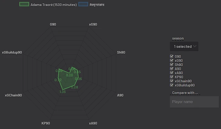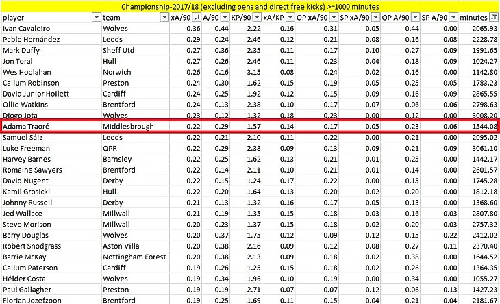 Как ни странно, именно под руководством валлийца, известного особым оборонительным фетишизмом, Траоре достиг наибольшего прогресса. Пулис сделал испанца важнейшим звеном в доставке мяча в финальную треть (Траоре банально протаскивал мяч на дриблинге) и дал ему больше свободы для перемещений по полю (при предыдущих тренерах Адама был привязан в к правому флангу). Плюс партнеры специально создавали изоляции под Траоре, чем заметно облегчали ему жизнь. Прогресс мгновенно отразился на статистике созданных моментов: прошлогодние 0,08 xA/90 прокачались до 0,22, что стало восьмым результатом в лиге среди сыгравших более 1500 минут.