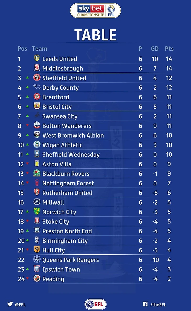 «Вест Бромвич» пока смотрится лучше всех (3 победы и 15 забитых мячей в 6 матчах), задорно играя в атаке, но слишком много пропуская для претендента на промоушн.