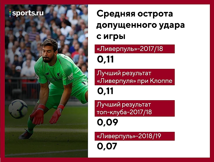 В новом сезоне все стало совсем круто. Средняя острота допущенных «Ливерпулем» ударов 0,07 против 0,11 в прошлом году. Это огромная разница, учитывая, что вся лига умещается в диапазоне 0,06-0,15.