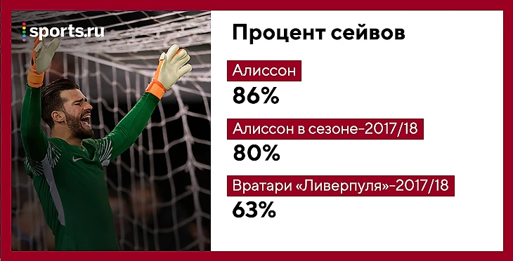 Превосходство бразильца над прошлогодними вратарями «Ливерпуля» очевидно. Средний результат по лиге колеблется между 68-70% в зависимости от сезона. Вратарь с 80% и более отраженных ударов – это топ-кипер в удачный для себя сезон. 63% – это провал, даже со скидкой на сложность ударов, которые допускал «Ливерпуль».