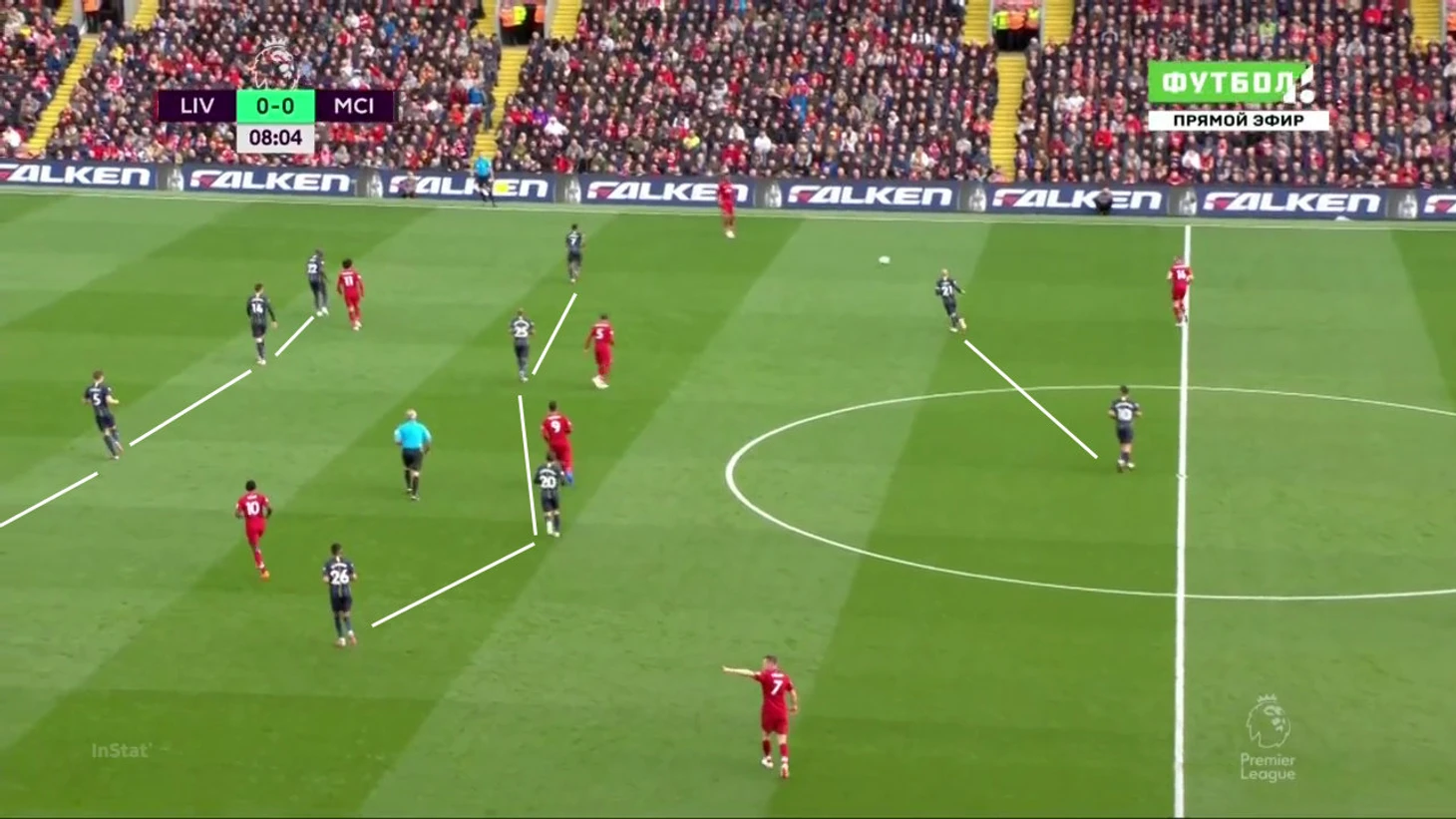 Вместо прессинга «Сити» компактной схемой направлял атаки «Ливерпуля» на фланги. Реальные попытки отбора начинались только там.