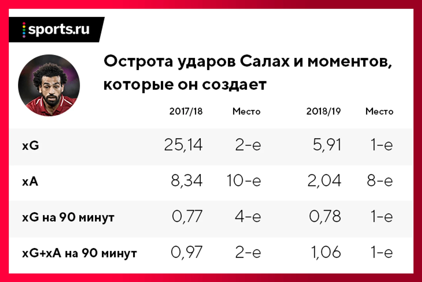 Салах может быть редким исключением, но переоценивать значимость описанных опасений тоже не стоит. Намного важнее то, что в каждом полном сезоне в топ-лигах Салах показывал результат лучше его показателя xG, хотя роли менялись, а сильные стороны египтянина давно известны соперникам. В долгосрочной перспективе это важнее всего.