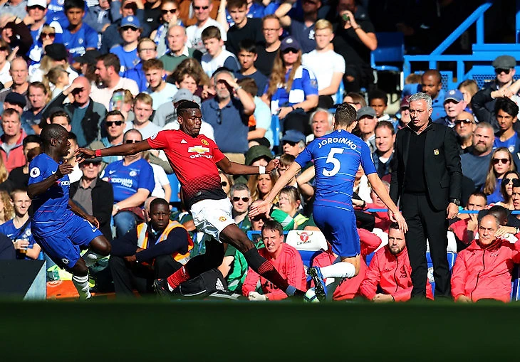13. Катализатором позитивного смелого отрезка «Юнайтед» во втором тайме стал Погба. За отрезок в 30 минут он сделал больше передач вперед, чем за весь первый тайм и, конечно же, больше любого другого игрока «МЮ». Он постоянно вытаскивал команду из трудных ситуаций под прессингом «Челси».