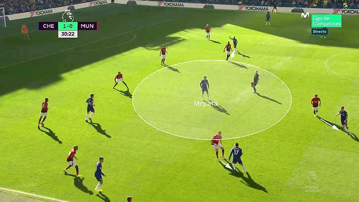 По всему полю «МЮ», кроме центра защиты, обороняется персонально. Футболисты не оглядываются на позиции партнеров. Мората получает невероятную свободу в опорной.