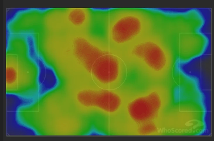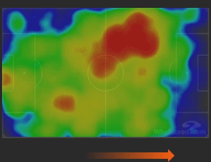 Это типичная тепловая карта «Челси» – мяч не задерживается в линии защиты, команда доминирует в центре поля, в атаке задействованы два полуфланга и опорная зона. Эталон для команды, которые много владеет мячом.