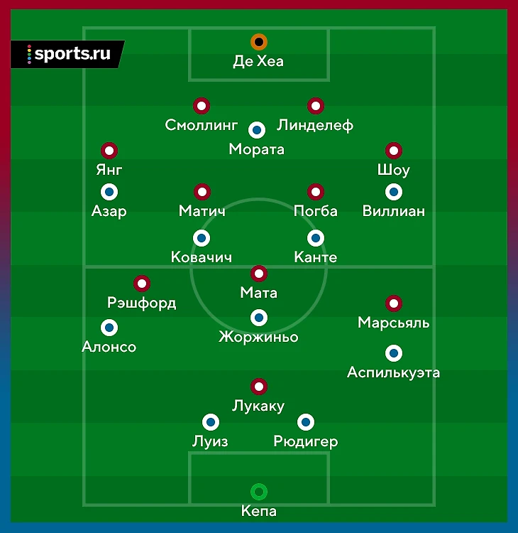 На них выпал невероятный объем работы, они сделали больше отборов и перехватов, чем все остальные футболисты «МЮ» вместе взятые. При этом тройка почти не ошибалась – из 14 попыток отбора 12 были успешными. Правда, часто приходилось грубить – Янг, Рэшфорд и Матич в лидерах по фолам. Трактовки Майка Дина тоже помогали. Например, Матич получил желтую карточку на 13-й минуте, но она могла быть второй – он чудом избежал наказания за фол на Азаре перед штрафной парой минут ранее.