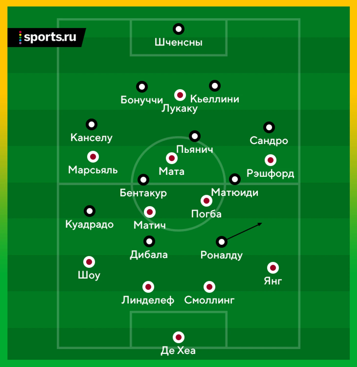 «Юнайтед» при Моуринью строит оборону через персональную игру – такой подход делает оглядку на схему соперника особенно важной. «Ювентус» использовал гибридную формацию – 4-3-3, которые из-за движения Криштиану Роналду часто трансформируются в 4-4-2.