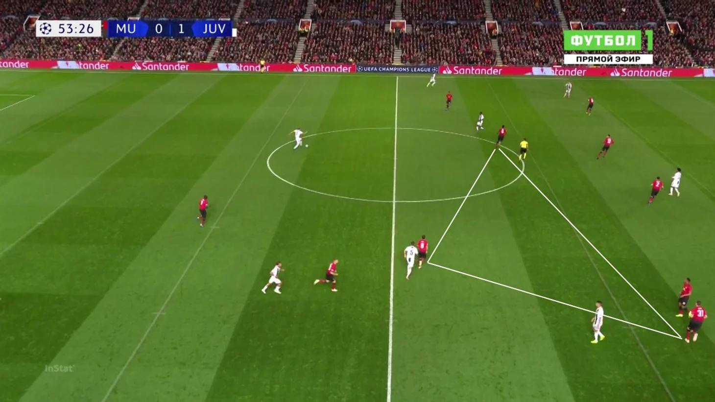 Это лишь частный пример. «Юве» умышленно использовал такой прием по всему полю. Провоцируя для игроков «МЮ» ситуации, в которых нужно передавать футболистов, «Ювентус» провоцировал ошибки – и это отлично работало.