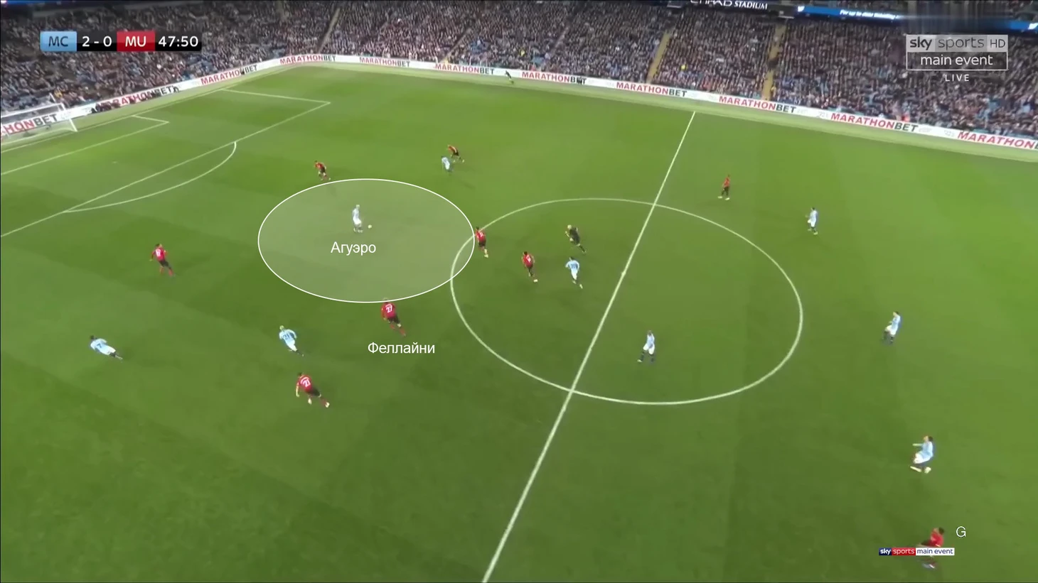 Бельгиец не успел создать проблемы «горожанам» таким образом. От хода Моуринью пострадал именно «Юнайтед». Во втором голе опорная зона оказалась свободной, именно потому что «Сити» перехватил мяч после штрафного «МЮ» и поймал Феллайни на переходе из одной позиции в другую.