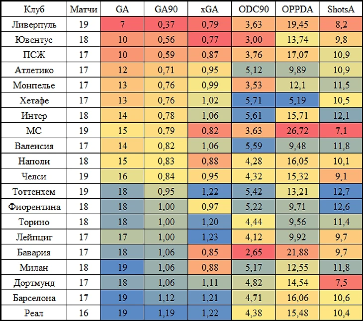 По ожидаемым голам только оборона «Ювентуса» имеет незначительное превосходство. Показатель ODC90 (количество допущенных передач в опасную зону) на одном уровне с «Сити». Лучше только у «Баварии», «Юве» и «Монпелье». OPPDA, который демонстрирует устойчивость команды к высокому прессингу, третий после «Сити» и «Баварии». И только по воротам «Боруссии Дортмунд» и того же «Сити» бьют реже.