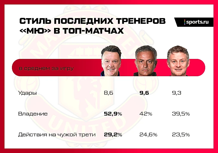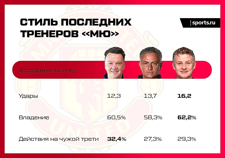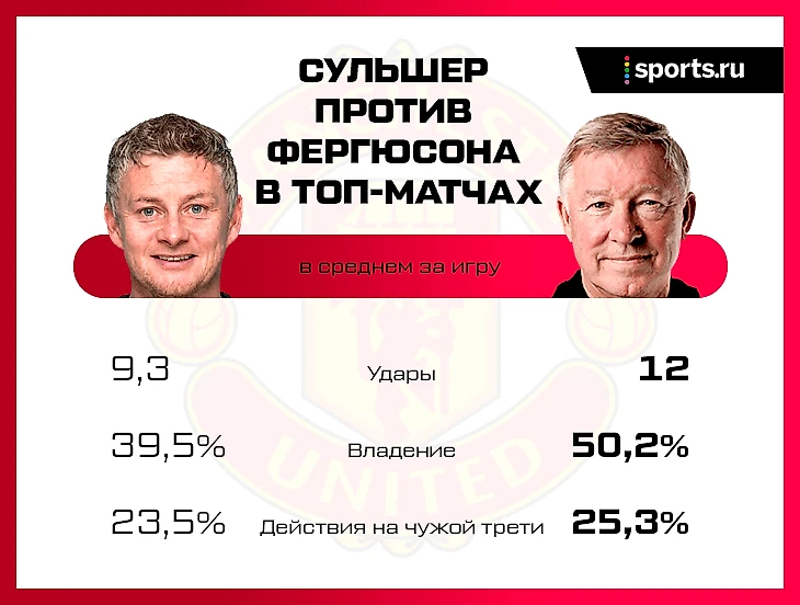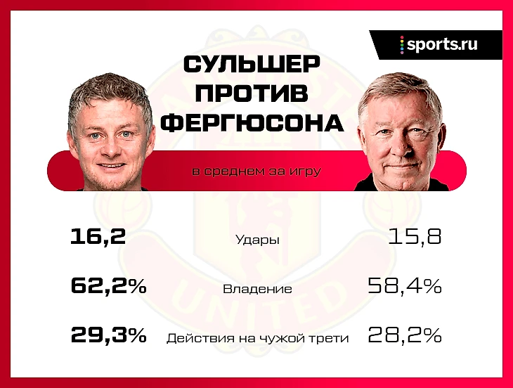 То есть именно такие суперпоказатели, возможно, слегка льстят Сульшеру, но он, без сомнений, лучше остальных тренеров после Фергюсона трансформирует преимущество в удары и моменты. Этой постоянной остроты не хватало и при Мойесе, и при ЛВГ, и при Моуринью. Неудивительно, что фанаты видят схожесть со стилем Фергюсона: