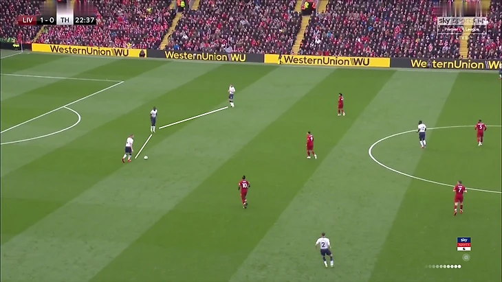 При обороне Эриксен располагался на фланге, но, когда команда была с мячом, становился дополнительной десяткой. У «Ливерпуля» в центре поля было лишь три футболиста – «Тоттенхэм» получал перевес: