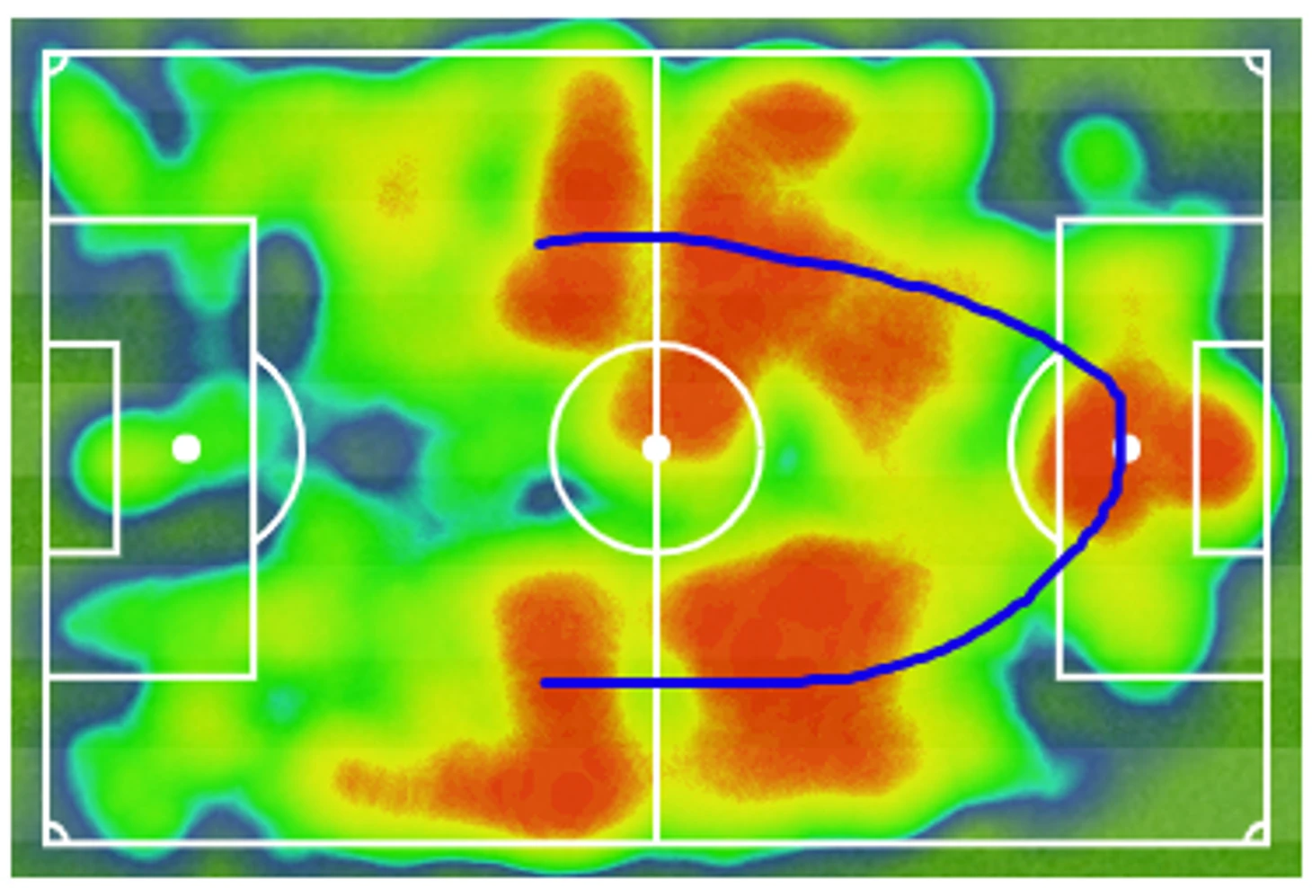 13. Еще один неочевидный герой матча – Мусса Сиссоко. Он здорово себя показывал в быстрых атаках, сдерживал Гюндогана в центре и активно помогал Триппьеру на правом фланге. Вот карта его оборонительной активности: