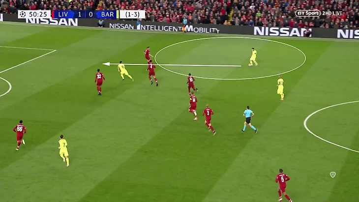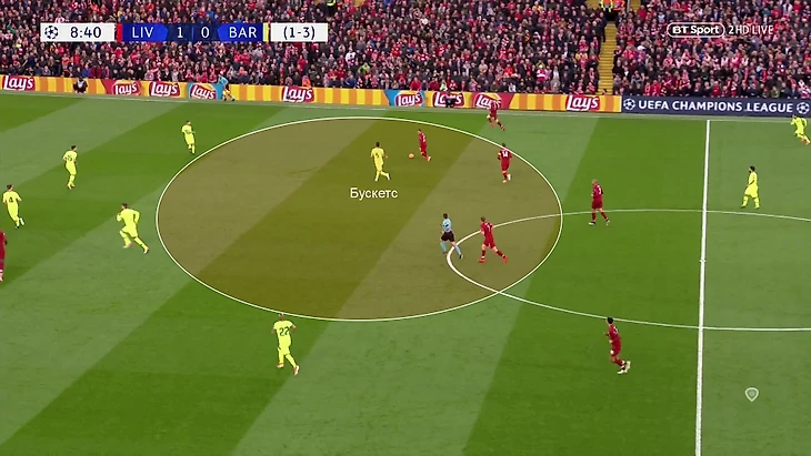 В результате слишком часто возникали ситуации, когда один Бускетс (или с поддержкой максимум одного партнера) вынужден закрывать огромную зону в центре сразу после перехода мяча к «Ливерпулю»: