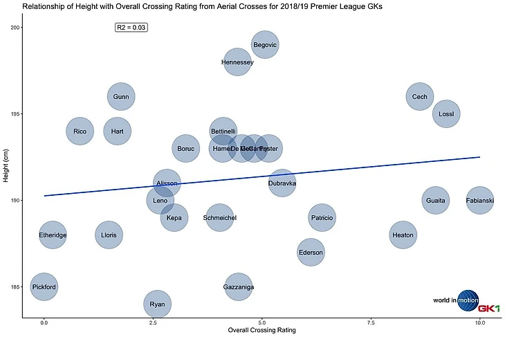 А вот ответ на главный вопрос про выходы: есть ли связь между ростом вратаря и умением играть при навесах? Практически никакой.