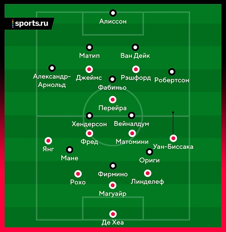 Оле-Гуннар Сульшер впервые в сезоне выставил схему с тремя центральными защитниками. Формация 3-4-1-2 полностью зеркалила ливерпульские 4-3-3. Норвежец сыграл персонально по всему полю.