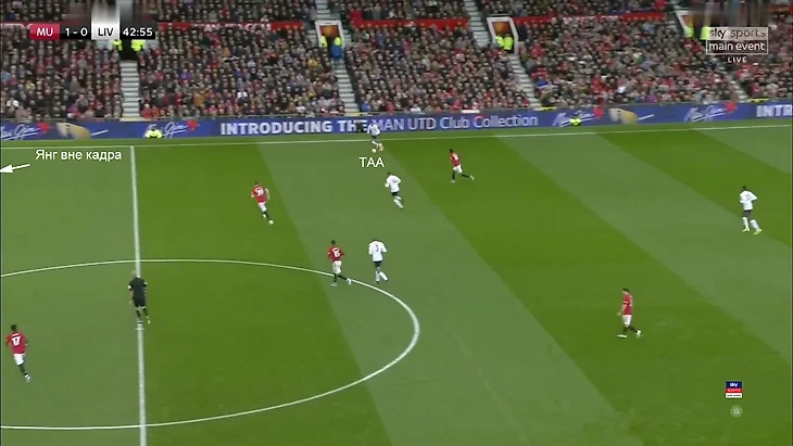 Начало второго тайма. Похожая ситуация – Янг снова не прочитал и дал ТАА потенциальный шанс для обострения: