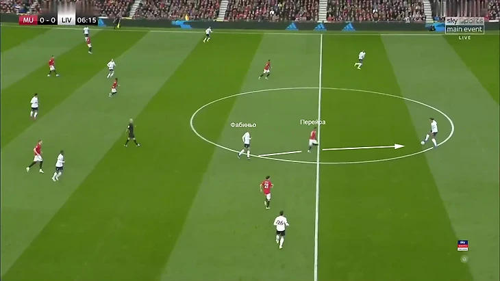 Обычно Фабиньо выступает в роли разыгрывающего в первой стадии атак «Ливерпуля». В первом тайме (до перестроений Клоппа в перерыве) он был полностью прикрыт – он выполнил всего 14 передач (10-й в составе «Ливерпуля» – меньше только у Мане). Это факт уже подчеркивает уровень персональной работы Перейры.