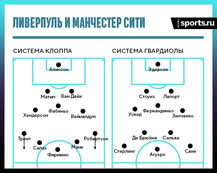 Дошло до того, что Пеп стал узнавать свою структуру позиционной атаки в «Ливерпуле» (с другими ролями игроков, но тот же шаблон). Там, где у «Сити» Кевин де Брюйне и Давид Сильва, у «Ливерпуля» – Мо Салах и Садио Мане. Там, где у «Сити» Рахим Стерлинг и Лерой Сане (либо Марез и Стерлинг), у «Ливерпуля» – крайние защитники. Обе команды в атаке используют одни и те же зоны (часто полуфланги), но из-за характеристик игроков делают это очень по-разному.