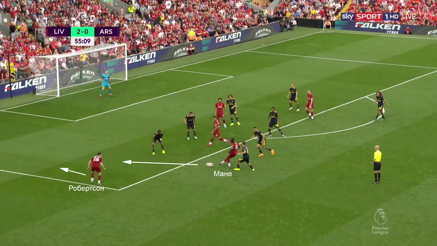 • благодаря позиционной структуре и угрозе от атакующей тройки Салах-Фирмино-Мане, соперники сужаются и оставляют фланги свободными.