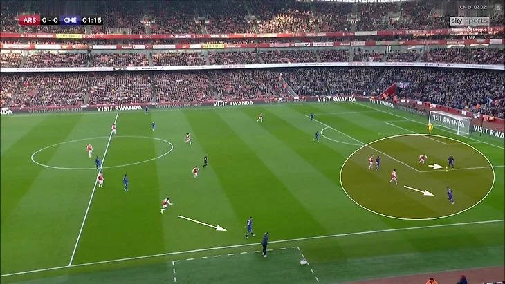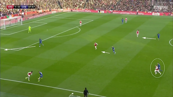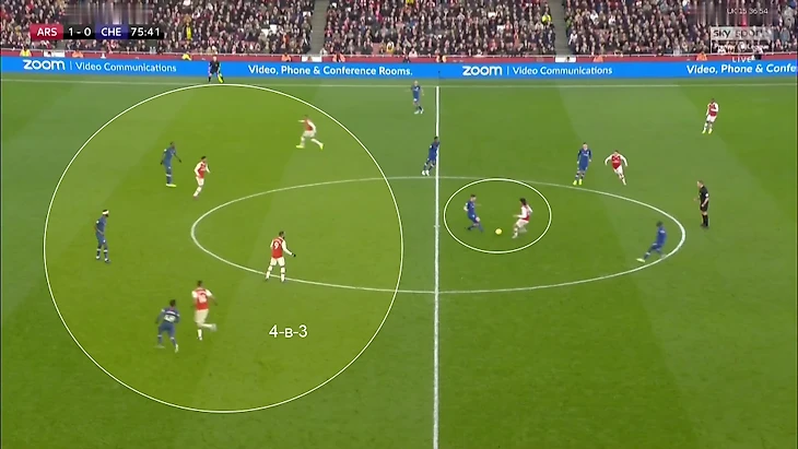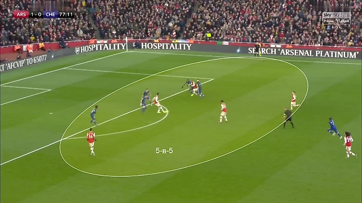 «Арсенал» тонко чувствовал такие моменты и быстро доставлял мяч в проблемную зону. Оба расклада работали против «Челси». Либо «Арсенал» уверенно держит мяч, либо проходит давление через проблемную зону.