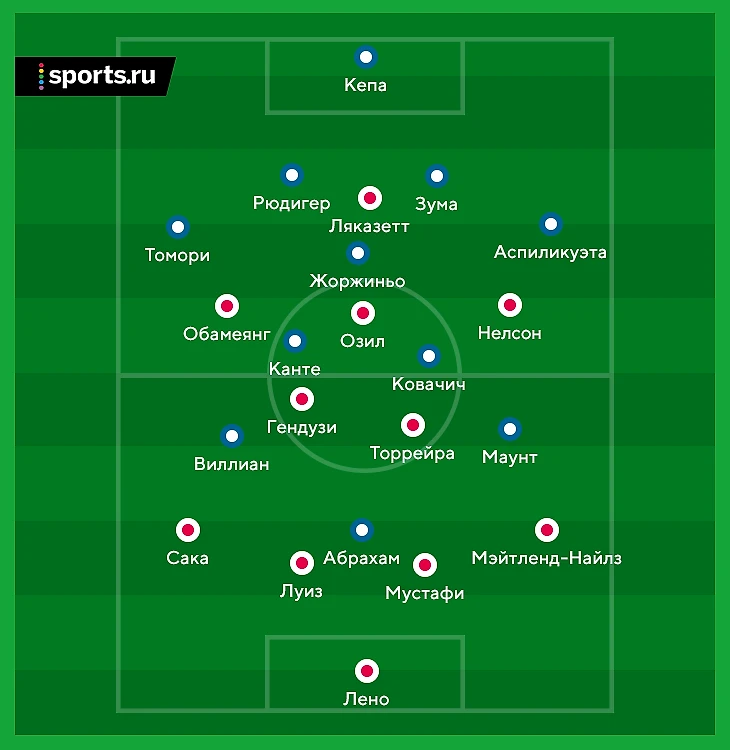 Пока оказывали помощь травмировавшемуся Чемберсу, Лэмпард поменял флангами Маунта и Виллиана, наградив Мэйсона особенным заданием в прессинге. Теперь Маунт либо играл против Торрейры в тех самых трудных эпизодах: