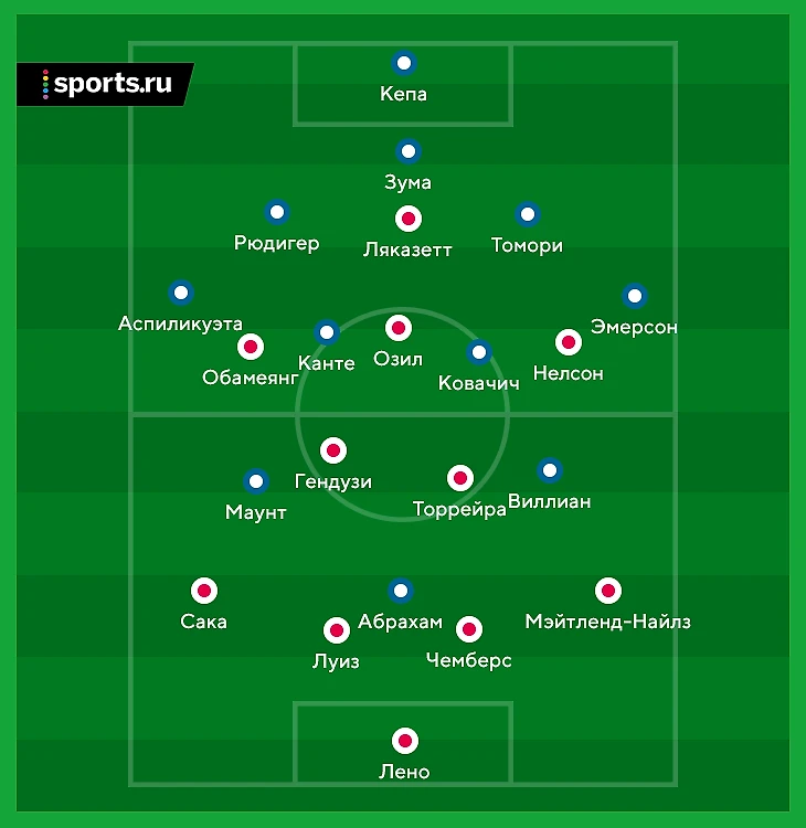 Аррисабалага, Томори, Зума, Рюдигер, Виллиан, Маунт, Эмерсон, Аспиликуэта, Ковачич, Канте, Абрахам