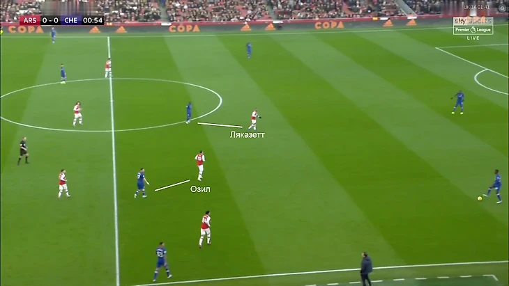 Вот хороший пример. Ляказетт и Обамеянг манипулируют позициями Курта Зума и Антонио Рюдигера:
