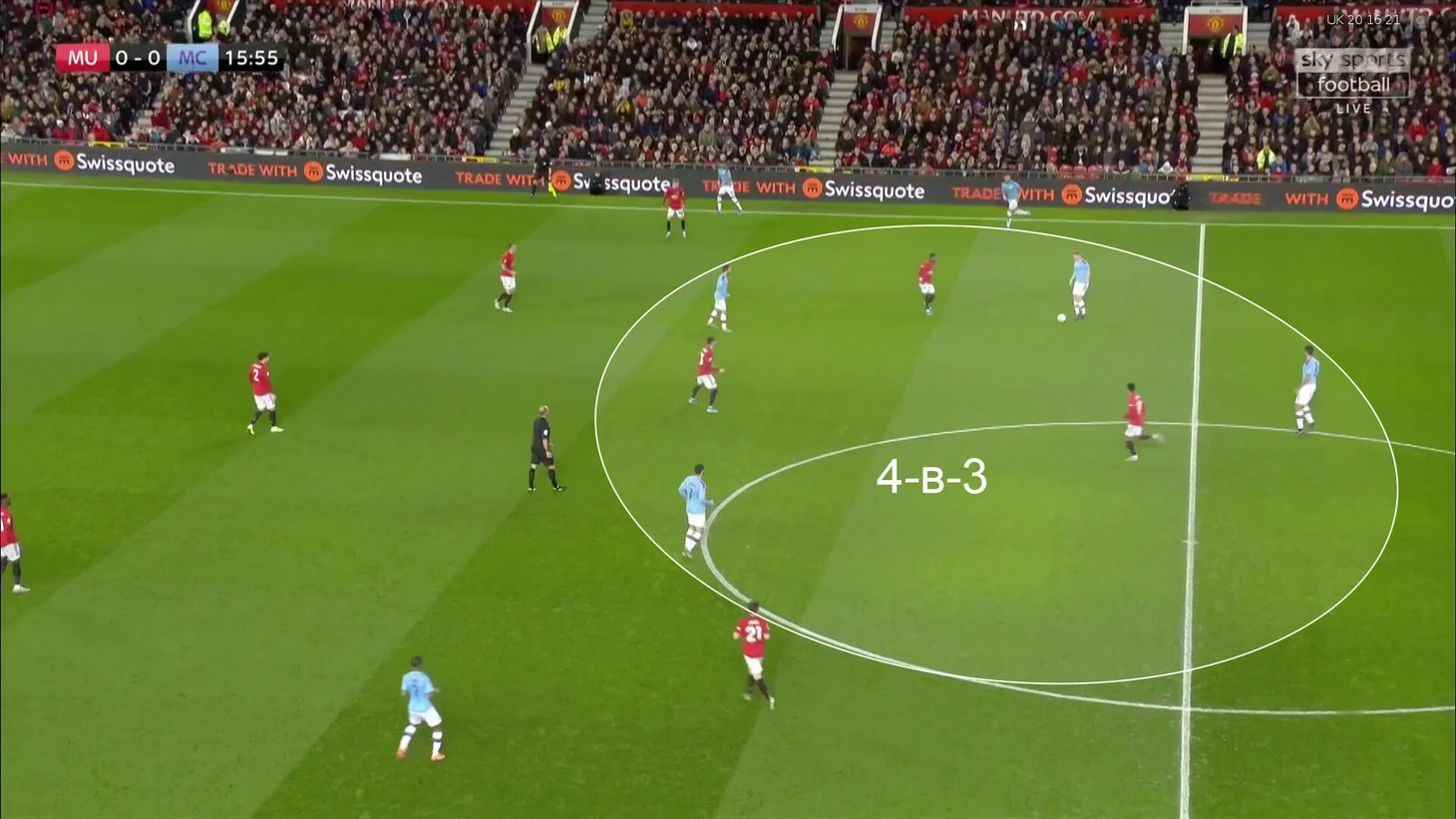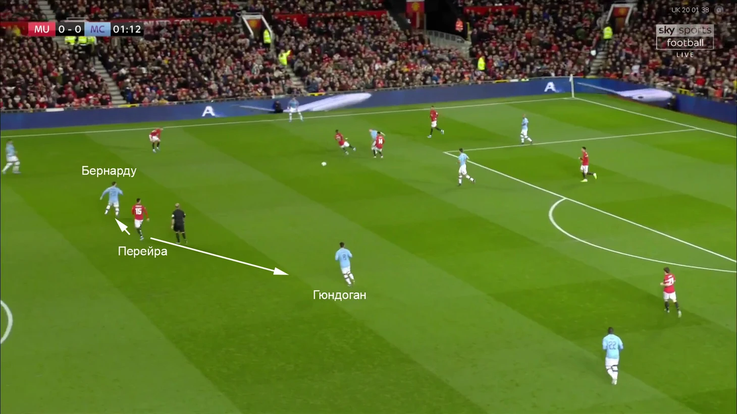 6. Роль Бернарду создавала «Юнайтед» проблемы не только при прессинге, но и при обороне на своей половине. Частой была ситуация 4-в-3 в центре поля. «Я насладился игрой в этой роли – она сработала, а мы победили. Пеп хотел, чтобы у нас было на одного игрока больше в центре, поэтому использовал меня тут. Доволен своей игрой. Здорово, что все сработало», – объяснил после игры сам Бернарду.