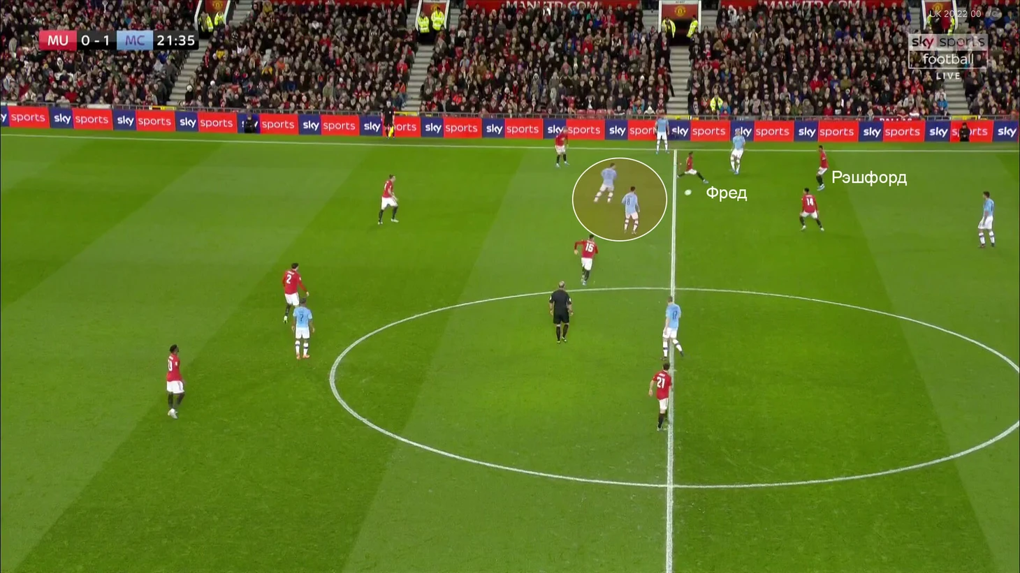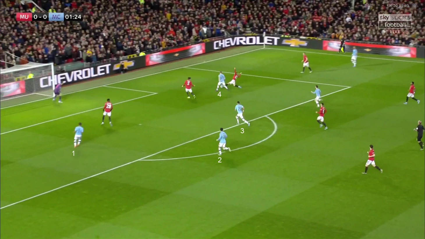 Полузащитникам «МЮ» приходилось разрываться – игроки «Сити» получали свободу. В данном случае свободу для подготовки удара.