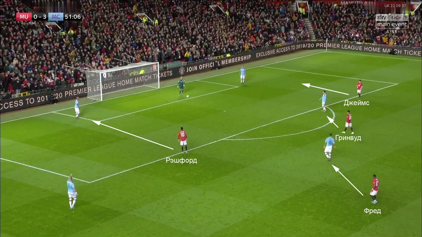 Один из них и случился в контратаке на 0:3. Именно из выбрасываний футболистов и агрессивной манеры «МЮ» родилась атака, где у «Сити» было 3-в-2 против Джонса и Перейры в заключительной стадии.