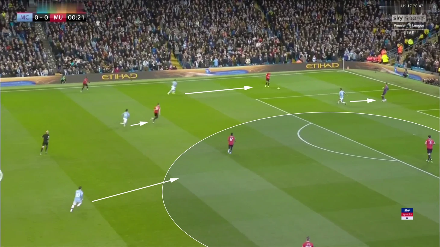 Именно в продуманности и в количестве вариантов было ключевое отличие от первого дерби, где прессинг «МЮ» работал. В этот раз «Сити» намного реже ошибался в этой стадии и увереннее переводил игру на чужую половину.