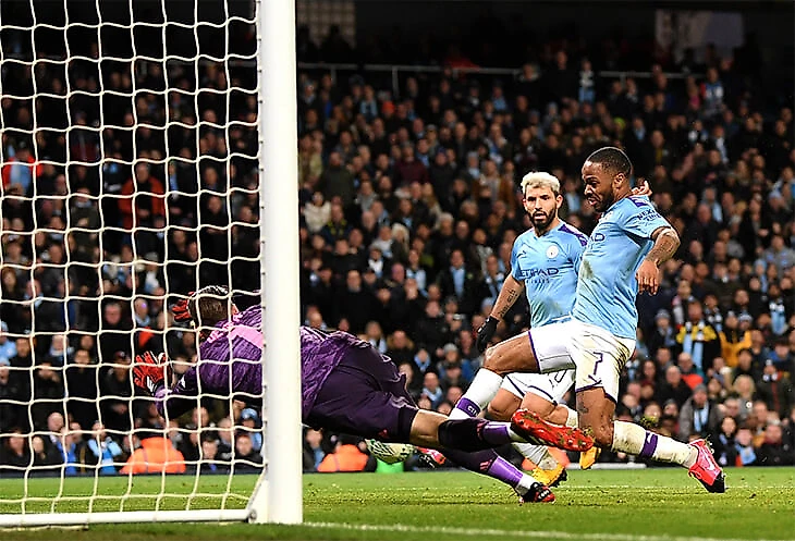 Роль Рахима тоже была гибридной – он начинал как левый вингер (или даже латераль), но при розыгрышах на чужой половине становился либо дополнительным атакующим полузащитником, либо дополнительным нападающим. Он хорошо принимал решения о смене позиции. Поскольку и без Стерлинга «Сити» доминировал в центре, почти всегда он помогал Агуэро в последней линии.