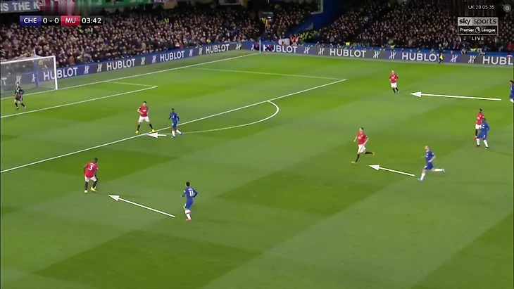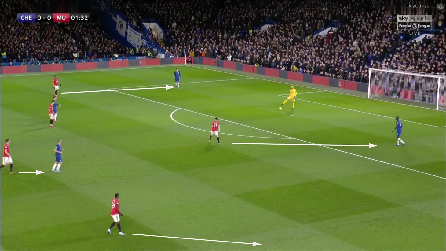 Аспиликуэта и Джеймс не всегда выдвигались для прессинга Уан-Биссаки и Уильямса. Они не хотели оставлять защитников 2-в-2 против быстрых Джеймса и Марсьяля. Но именно по этой причине у «МЮ» почти всегда был игрок, через которого можно выводить мяч.