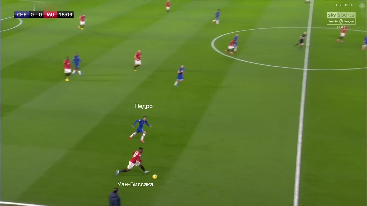 Вероятно, при более подготовленном прессинге «Челси» более слаженно играл бы в таких эпизодах. Такая неопределенность и постоянные полупозиции Виллиана и Педро сыграли косвенную роль в пропущенном голе. Блестящий проход Уан-Биссаки, но начался он именно с дополнительной пары секунд, которую он получил из-за неопределенности у «Челси».