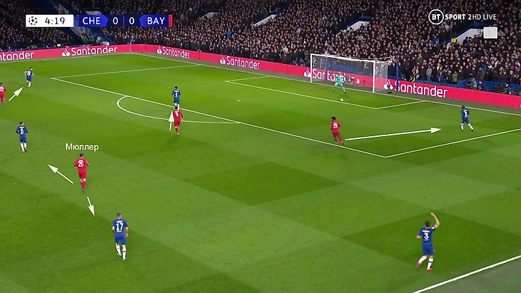 Сценарий матча идеально подходил Мюллеру. В центре поля у «Баварии» было постоянное преимущество. В атаке 3-против-3. В таких условиях передавать Томаса было особенно трудно. «Челси» регулярно путался. Момент с ударом в каркас – хороший пример. Сначала Ковачич пытается следить за Мюллером: