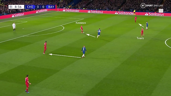 Еще один дополнительный фактор: интеллект Киммиха и Тиаго. В теории они слегка похожи по функциям при игре в опорной, но из-за высокой степени понимания игры вообще друг друга не дублируют. Их движение было эталонным и тоже играло роль в ошибках «Челси».