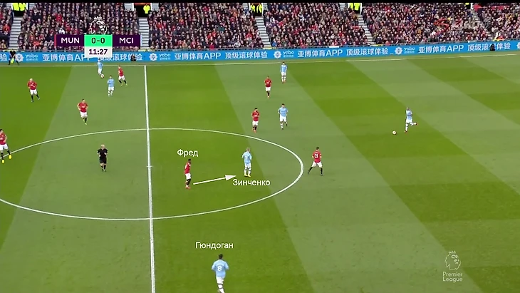 Фред достаточно мобилен, поэтому хорошо себя показывает в прессинге. Более того, он лучше остальных читает эпизоды при таком давлении – чувствует, когда можно слегка оставить игрока и помочь партнеру. Почти никогда не ошибается с такими решениями. И именно бразилец играет важную роль в передаче игроков при нестандартных ситуациях: он быстрее остальных заметил маневр с Гюндоганом и Зинченко – и делал все, чтобы никто из них не оставался свободным. Еще он регулярно создавал Уан-Биссаке подстраховку против Стерлинга.