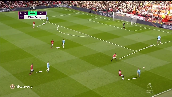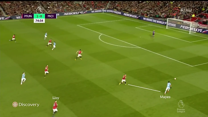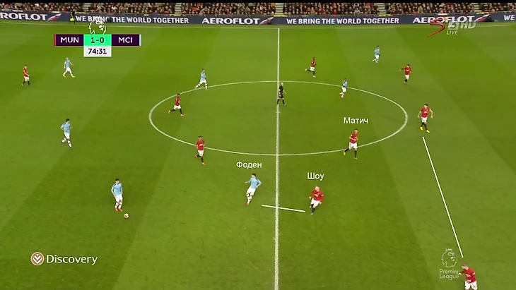 В теории выдвижения Шоу создавали разрыв в линии защиты. Но «МЮ» мог себе это позволить – на правом фланге у «Сити» играл Фоден (центральный полузащитник, который не делал опасных открываний и не выглядел устрашающе 1-в-1 против Уильямса).